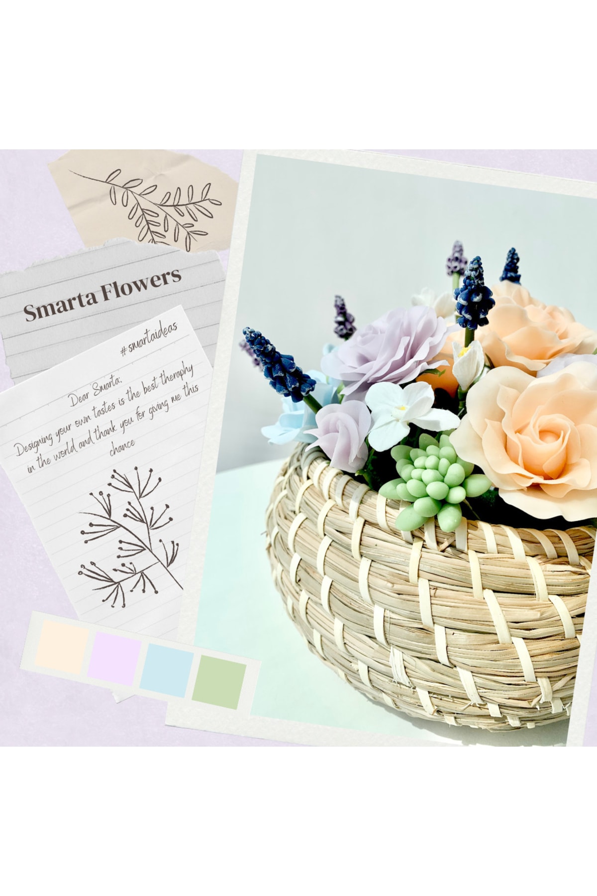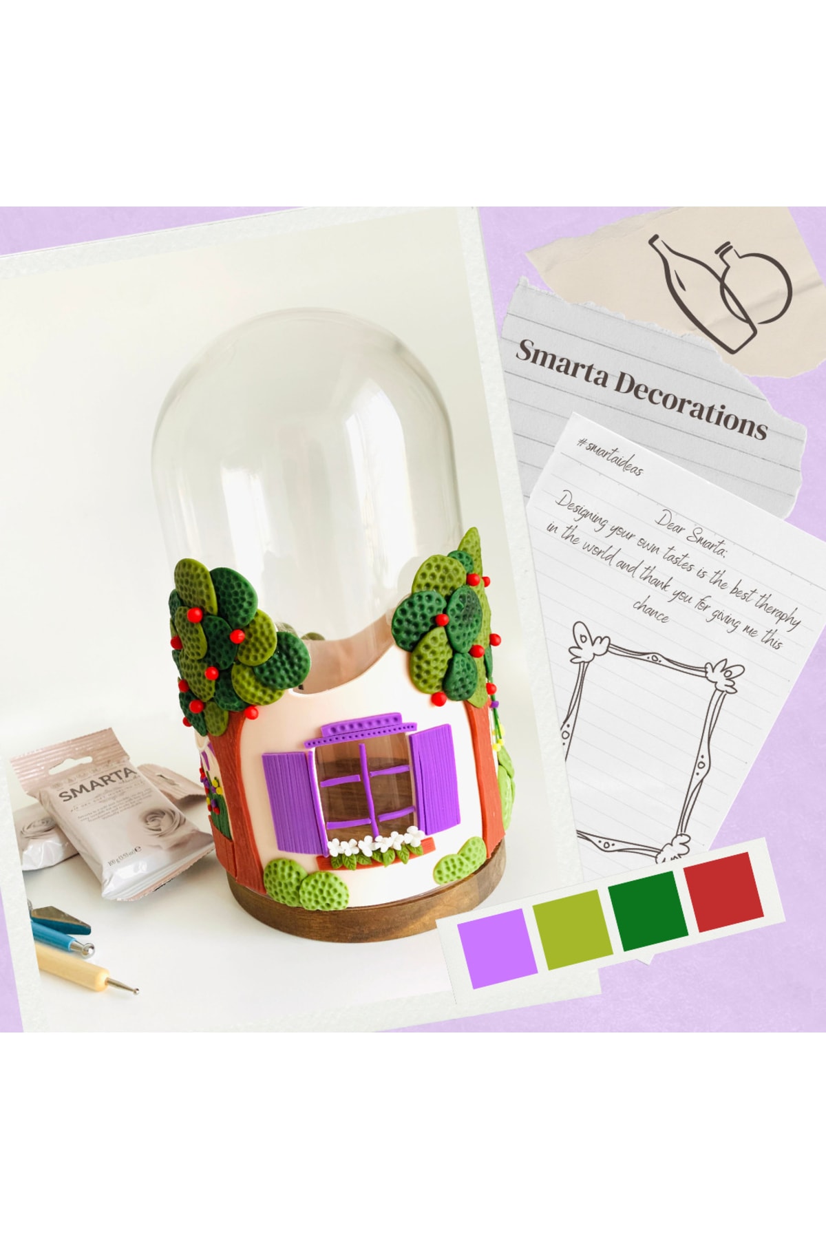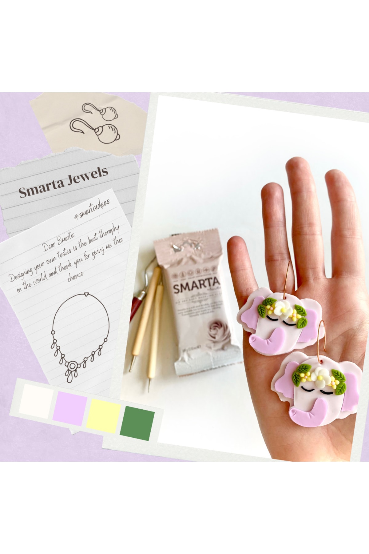 Smarta her türlü hobi, eğitim ve profesyonel amaçlı çiçek, dekor, figür, aksesuar, takı, minyatür ve sanatsal aranjmanlar yapabileceğiniz bir modelleme hamurudur. ; Hava ile ortalama 24 saatte kurur. Fırınlama gerektirmez, enerji sarfetmez. ; Kullanıma hazırdır. Yumuşak yapılıdır, kolay şekillendirilir. ; Esnek yapılır. Kırılmalara ve darbelere karşı dayanıklıdır. ; Her türlü akrilik, yağlı boya ve soft pastelle renk verilebilir. 28 farklı renk seçeneği bulunan Smarta renkleri birbiriyle karıştırılarak yeni renkler elde edilebilir.; Kalıp ve kesicilerle çalışmaya oldukça uygundur. Yüzey desenlerini başarıyla aktarır. ; Metal, cam,ahşap, plastik gibi birçok yüzeye uygulama yapabileceğiniz Smarta ile sanatın yenilikçi ve keyifli haline siz de merhaba diyin! 🙂 ;